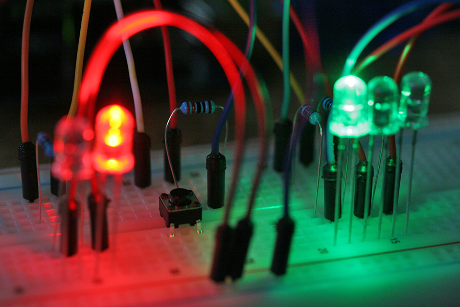 * wiring something simple like this traffic/pedestrian light simulation has already used up half of my breadboard wires. i'm going to need more wires if i plan on doing more complex projects.