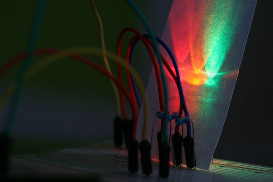 * an arduino board all lit up with various colors of LED's make for an interesting macro photo subject.