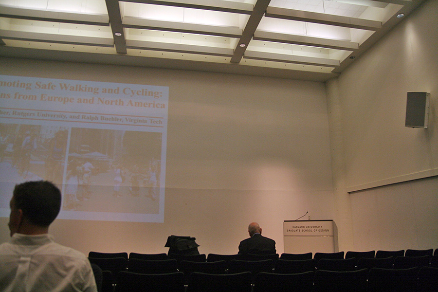 drew came home at 3:30. i told him about a 4:30 bike lecture at the harvard graduate school of design (GSD): "promoting cycling and walking for sustainable cities: lessons from europe and north america" by john pucher (rutgers). he wasn't sure if he wanted to go but finally decided it was worth checking out; we left around 4:00.