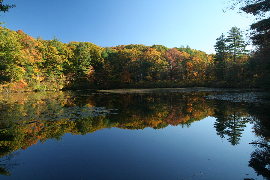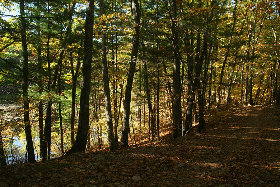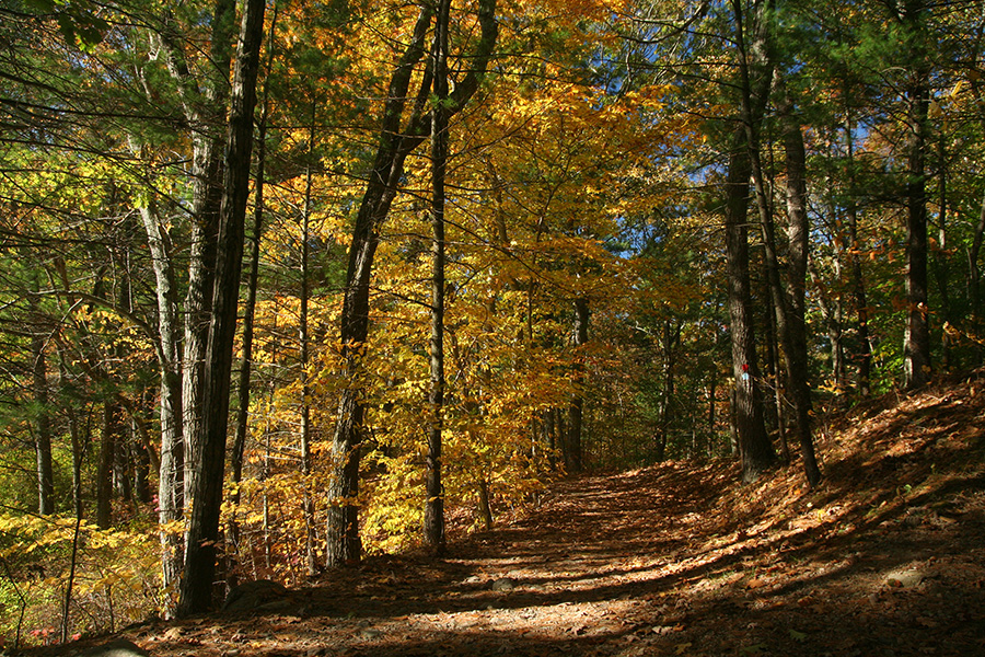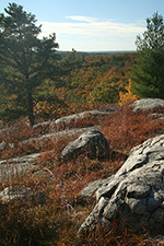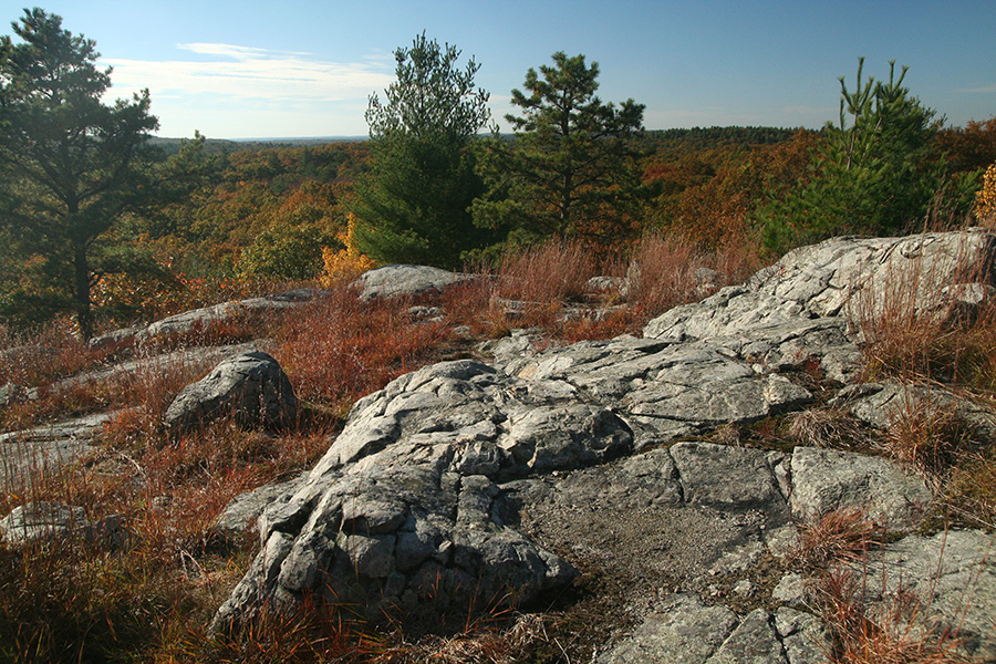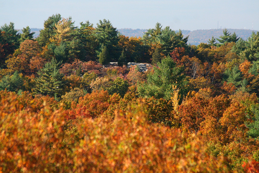 so with the nice weather1 plus the fact that i don't have any work, it was the perfect day to get back to nature. i picked noanet woods, which seems to be the default nature spot this time of the year primarily because of noanet peak which offers a nice vista of the changing foliage. the last time i went back was last november when i took my italian roommate marco. that was actually a great trip because we crossed over into nearby hale reservation to discover powisset peak, and equally impressive (and hidden) foliage vista.