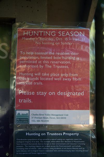 the hardest part of a noanet woods visit is just getting there. at about 17 miles it's not that far, but having to ride down route 16 and traverse newton and wellesley can take as much as an hour depending on traffic, and that's if i don't get lost, since riding a motorcycle requires me to memorize my entire route beforehand since there's no easy way to check the directions once i'm riding.
