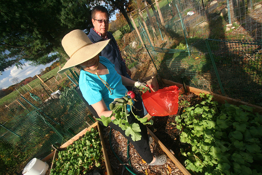 * thunderstorm last night * marcello roof inspection with ladder (came with 2 crew members and a little kid) * head of the charles regatta * radish picking at belmont victory garden * godmother delivers some chinese medicine plants (Dioscorea opposita and Panax pseudoginseng) * drew makes lasagna * the skin i live in