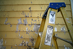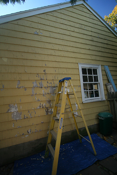 after lunch i rode the motorcycle to belmont to work on the house. originally we wanted to repaint the exterior, but it's going to take forever to scrape off the old paint and at this rate (plus given the fact that the weather is getting colder everyday) if we can repaint just one face of the house it'll be an accomplishment. i put down a tarp and did some scraping with a putty knife, which i found easier to use than a claw scraper.