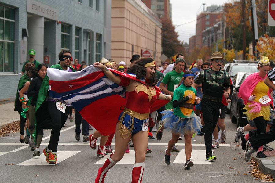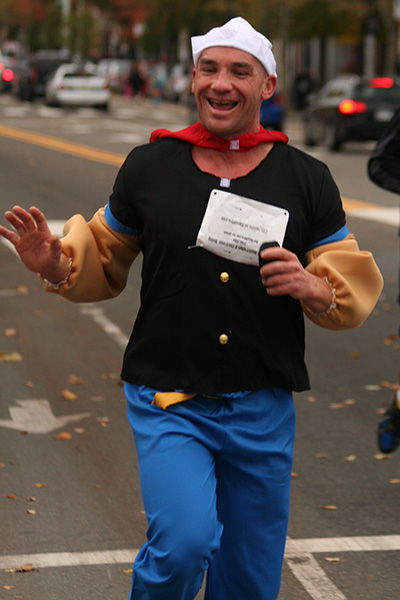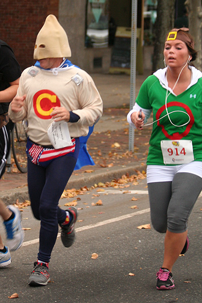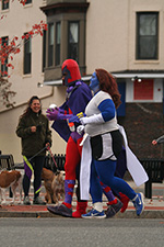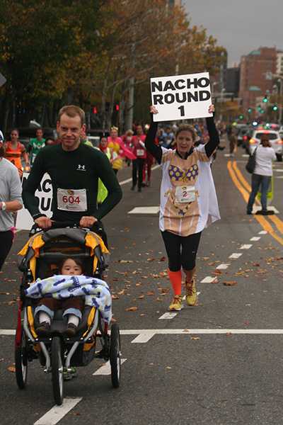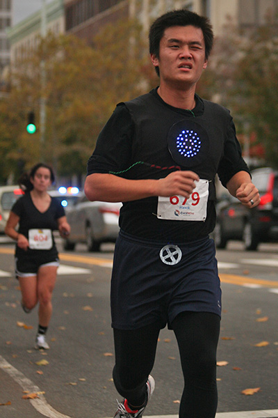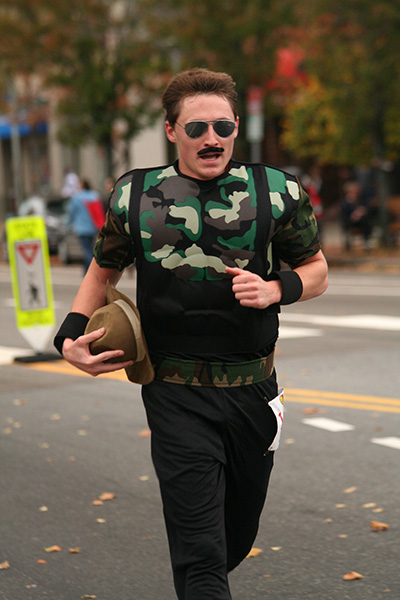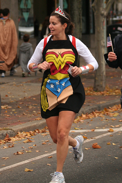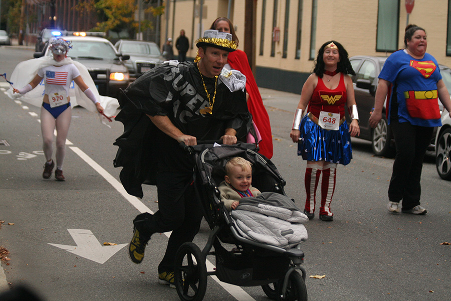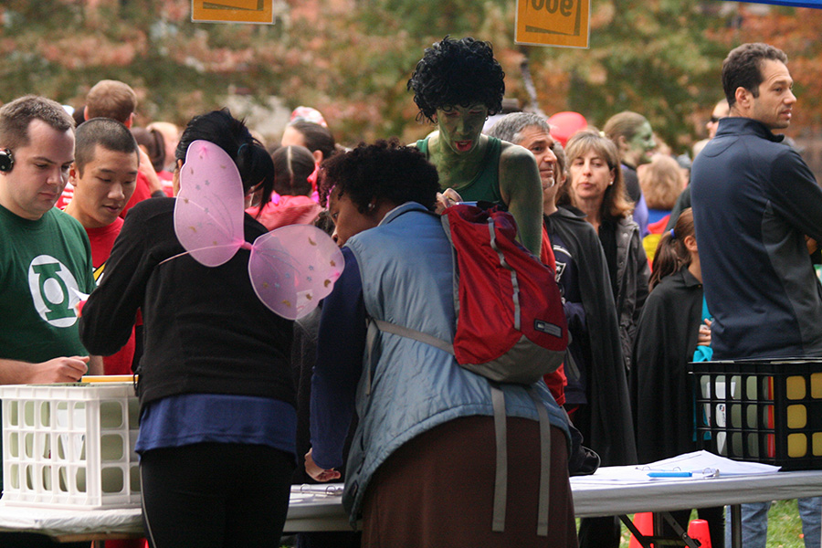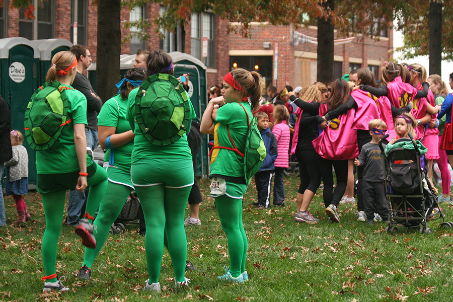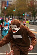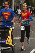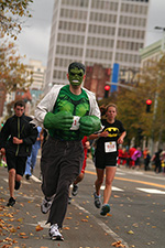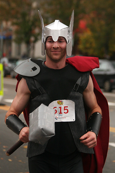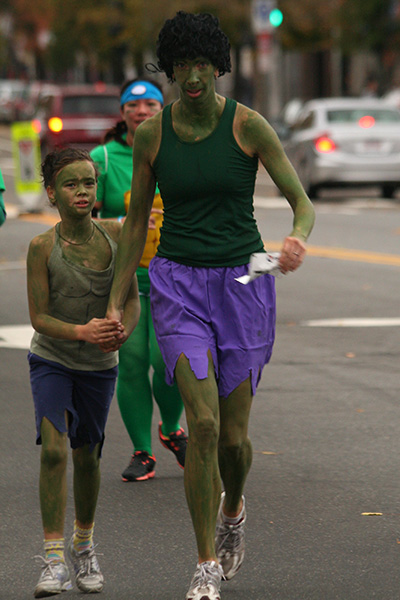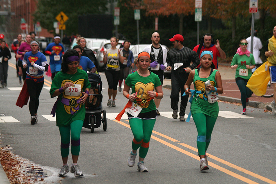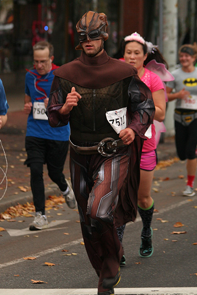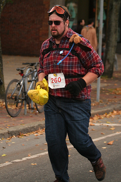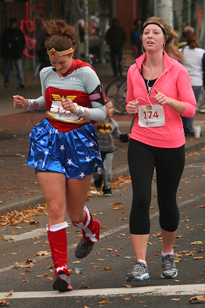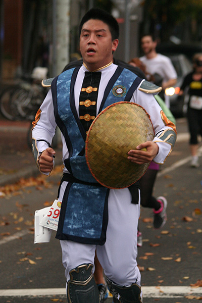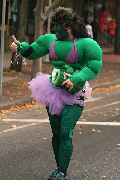 it's pretty interesting and there was so much to see that i used up my 4GB memory card without even realizing it (approximately 1000 photos). the amount of creativity is pretty amazing. i wonder if some of the outfits were actual halloween party outfits retrofitted as running gear? plus it helps that there were cash prizes for best individual and group costumes (i wonder who won? couldn't find a list online). it's no new york city halloween parade (2008, 2010), but i don't have to travel 250 miles to see it, and it takes place during the daytime (a little easier to photograph than at night).
