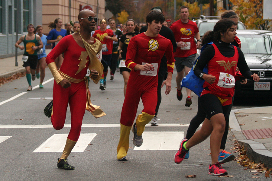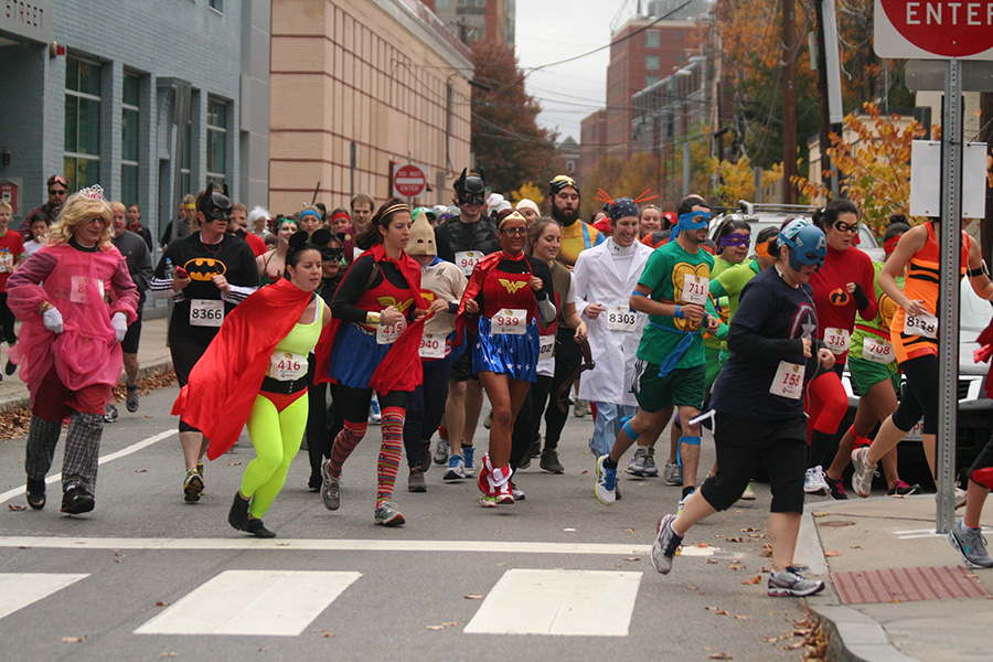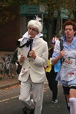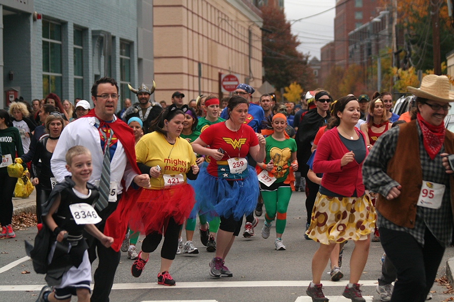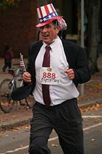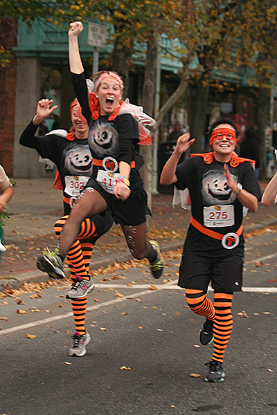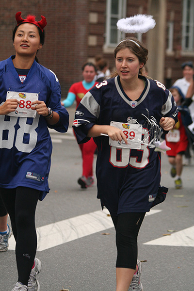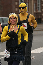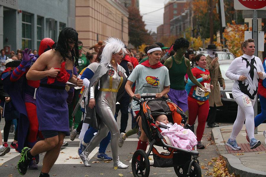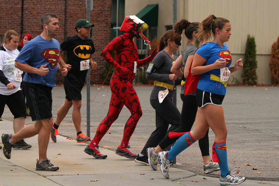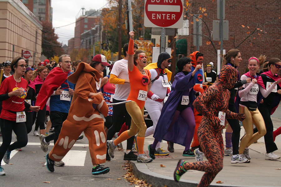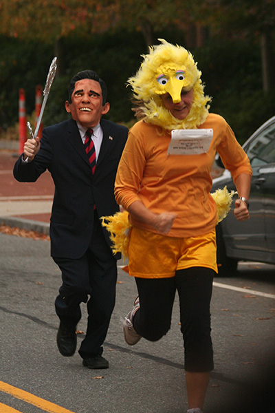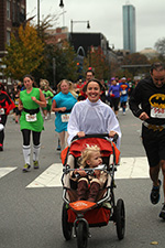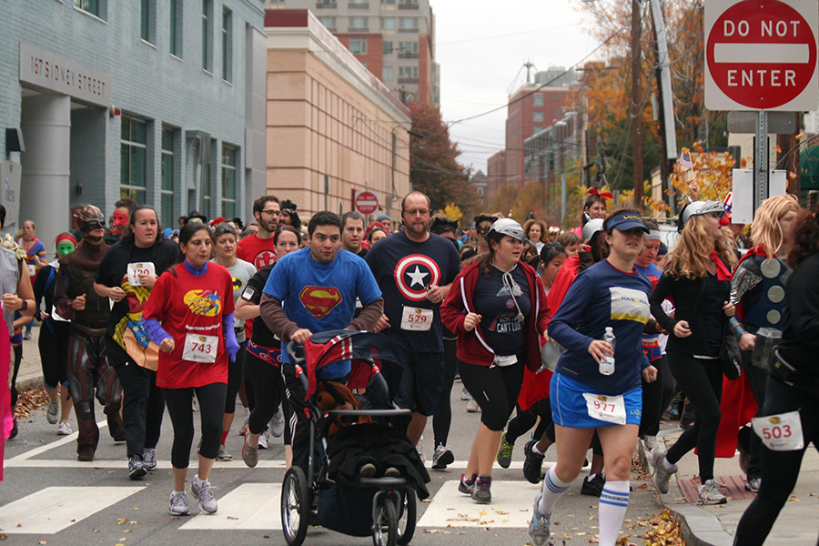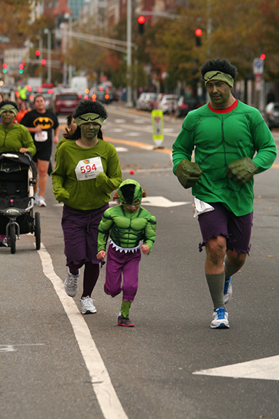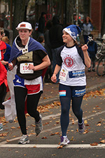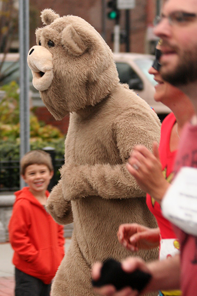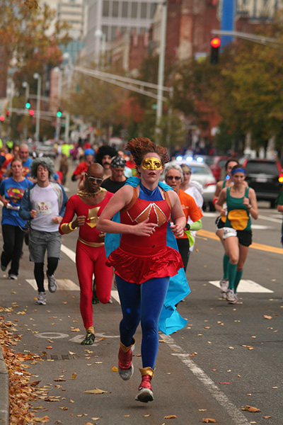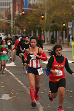 it's pretty interesting and there was so much to see that i used up my 4GB memory card without even realizing it (approximately 1000 photos). the amount of creativity is pretty amazing. i wonder if some of the outfits were actual halloween party outfits retrofitted as running gear? plus it helps that there were cash prizes for best individual and group costumes (i wonder who won? couldn't find a list online). it's no new york city halloween parade (2008, 2010), but i don't have to travel 250 miles to see it, and it takes place during the daytime (a little easier to photograph than at night).