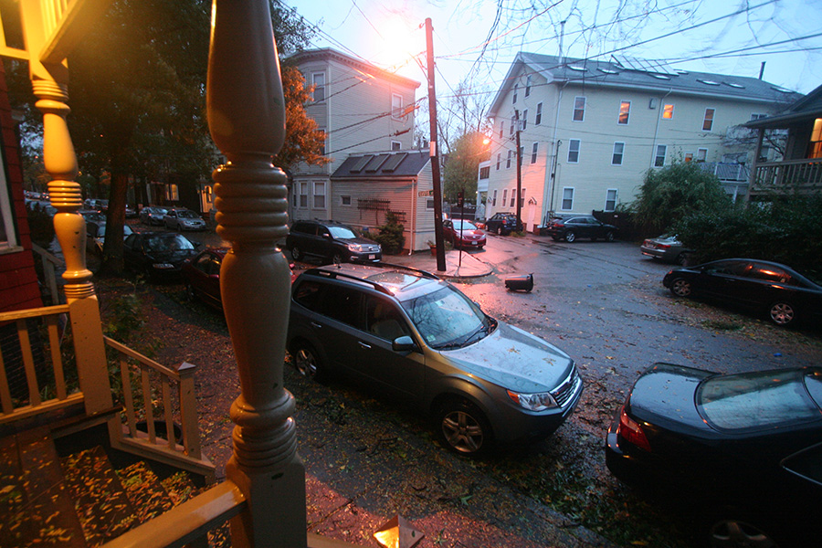 the full force of hurricane sandy arrived in cambridge today. not too much rain, but a lot of wind. i watched from my living room couch all day, trees swaying, leaves blowing, twigs falling. surprisingly, ranch roofing stuck to their appointment and came to the house at 11:00. i thought they would bring a ladder and climb on the roof during 60mph wind gusts (could they be that suicidal?), but it was just a guy (from new hampshire no less) with a measuring tape figuring out the dimensions from the ground. when steve told him about his 8 skylights, the roofer gave an incredulous, "are you serious?"