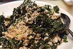 when we came back i made some kale and quinoa pilaf for dinner. i was basically following a recipe i found online. it seemed a bit pretentious, asking for ingredients like lacinato kale, meyer lemon, and toasted walnut oil (i'd never heard of any of those items before). i just ended up using regular kale, regular lemon, and olive oil. added to that was the quinoa, goat cheese, scallions, and cilantro. it tasted pretty good but could have used some bacon to make it even more savory. it was definitely healthy and i felt very full afterwards. besides bacon, i might try adding some pecan as well (even healthier, the recipe calls for pine nuts).