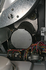 trying to figure out how much of the dryer guts i could get access to, i began unscrewing some panels after first turning off the electricity to the washer/dryer from the basement circuit breaker box. luckily it seems i can gain entry to everything from the front of the machine and won't need to tear down any walls. i also came across a short screwdriver while i was in the basement, which was crucial to opening the front panel of the dryer because the screws were located on top of the machine with very little clearance for a full-sized screwdriver.