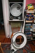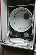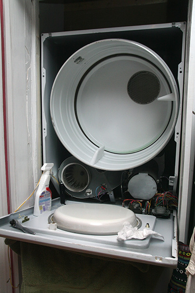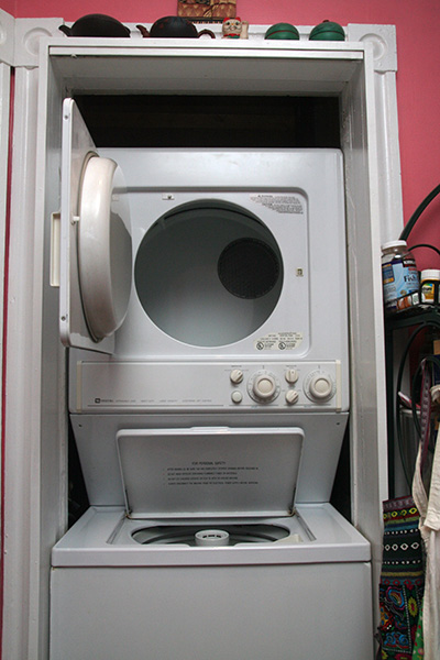 after flipping the power back on to the washer/dryer, i tested the dryer. not only was it not squeaking anymore, but the noise of clattering coins was gone. now the dryer runs perfectly silent, a thing of laundering beauty. so put that on my list of appliances i know how to fix!