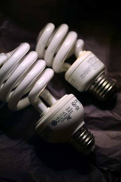 apparently when it rains lights it pours: while taking out the garbage, i noticed one of my neighbors had thrown out a broken torchiere, along with a perfectly good CFL bulb. CFL's aren't supposed to be thrown out in the trash anyway because