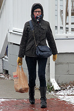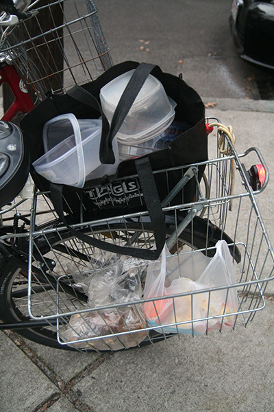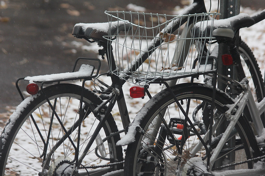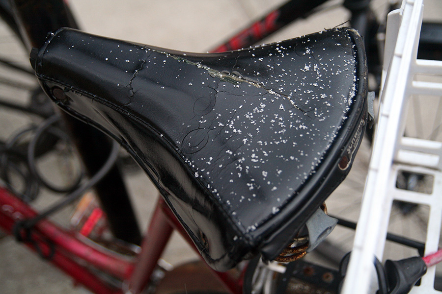 i returned to cambridge via the bicycle i left behind when i was at my parents' place on thursday (to borrow the car to drive out to the berkshires). by then it was already snowing. it was so cold though that it came down in white crumbs. there was hardly any traffic this early on a saturday morning so i had a leisurely ride back home. along the way, i even picked up a bag of tupperware somebody had thrown out. it was 7:20 by the time i got back.