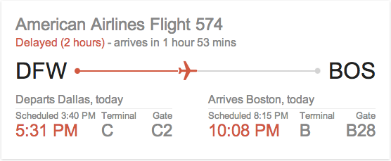 finally, i was indispensable for my parents because i was picking them up from the airport, along with my aunt and uncle. their flight was originally due to return at 8:00 but mechanical delay in texas resulted in a 10:00 arrival time. fortunately my father called earlier to let me know they'd be running late. i spent the evening repeatedly checking their flight status online.