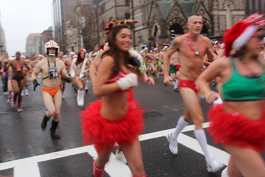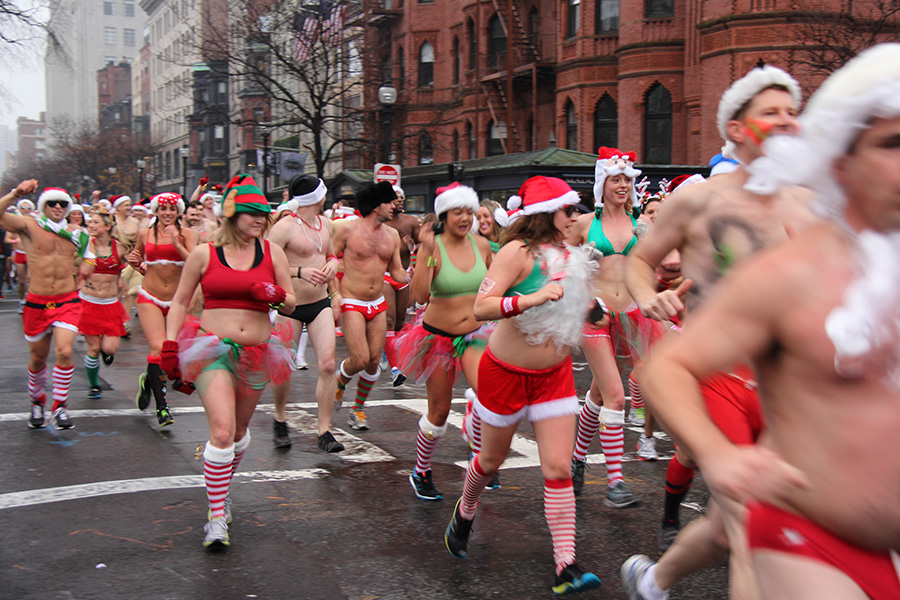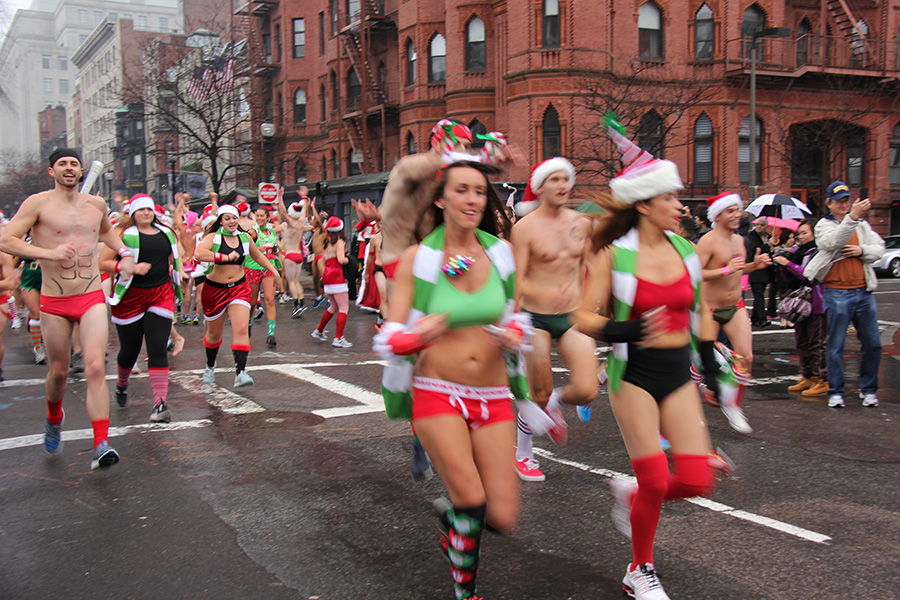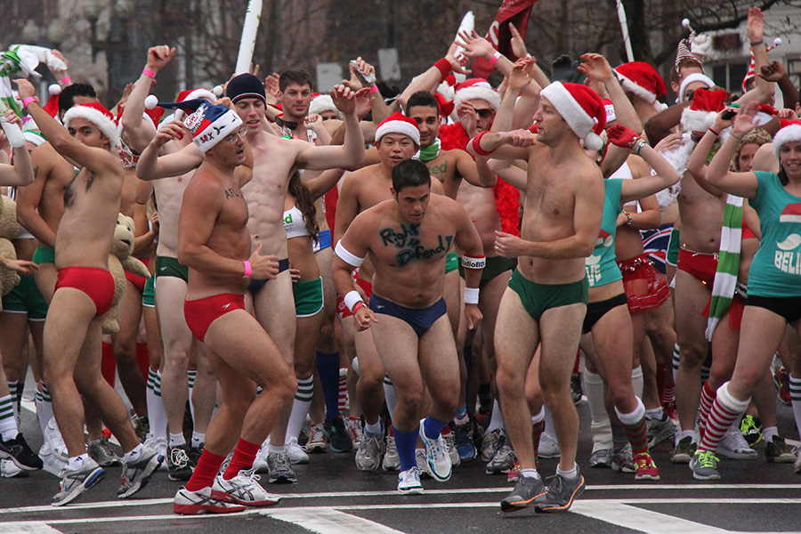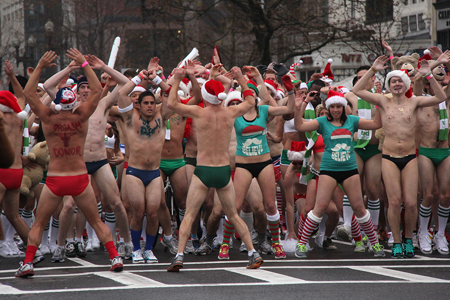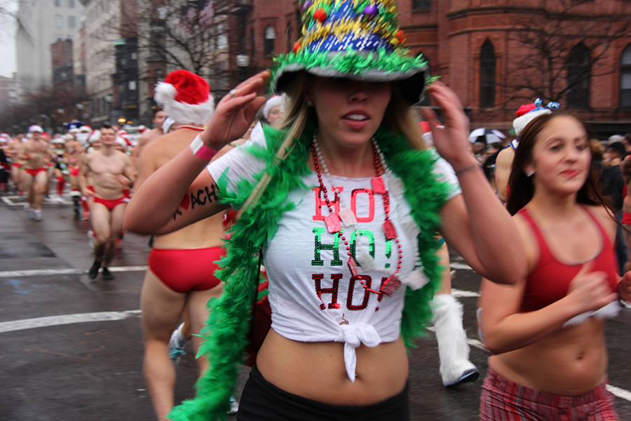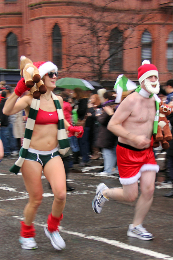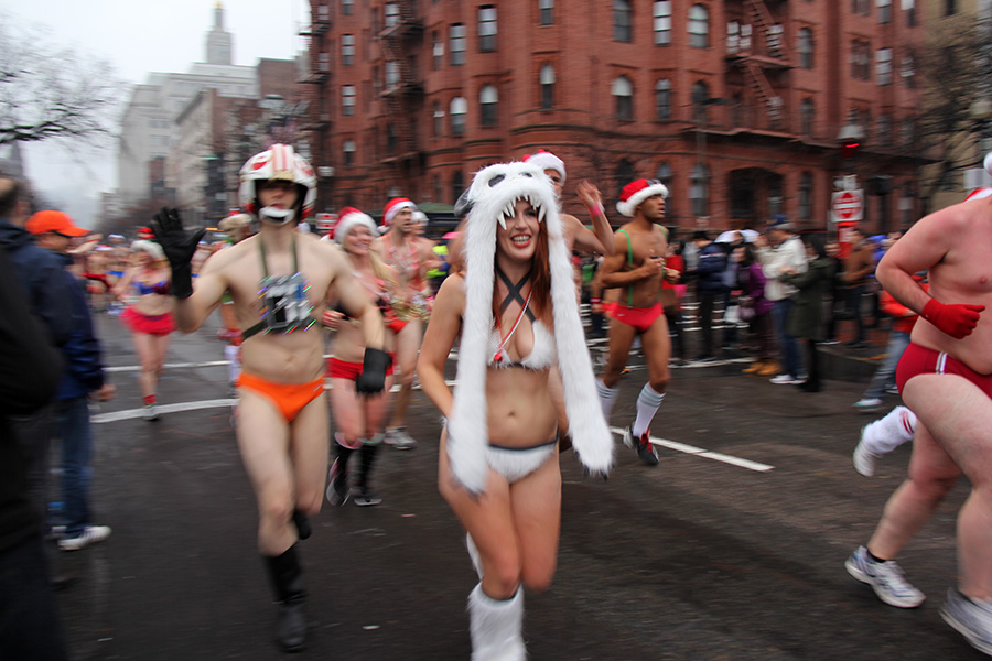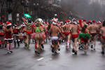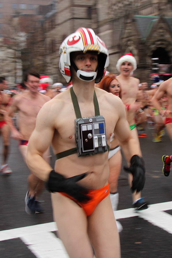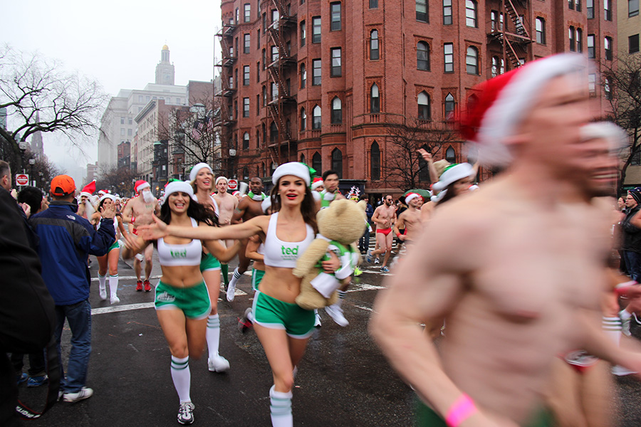 even year there seems to be more and more people participating in the santa speedo run. this year the profane teddy bear movie ted seemed to have hijacked the run in some sort of promotional campaign, with numerous folks decked out in ted paraphernalia. because there was so many people, it became this mob of runners which made it hard to see the individual creativity participants put into their speedo santa outfits.