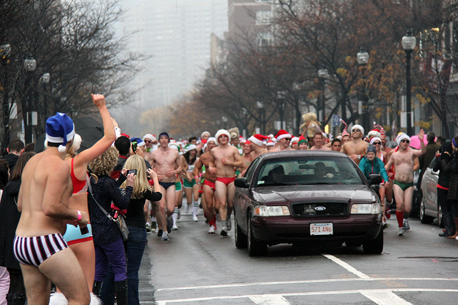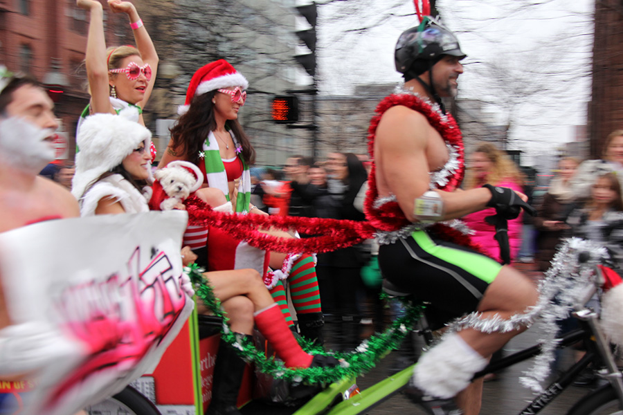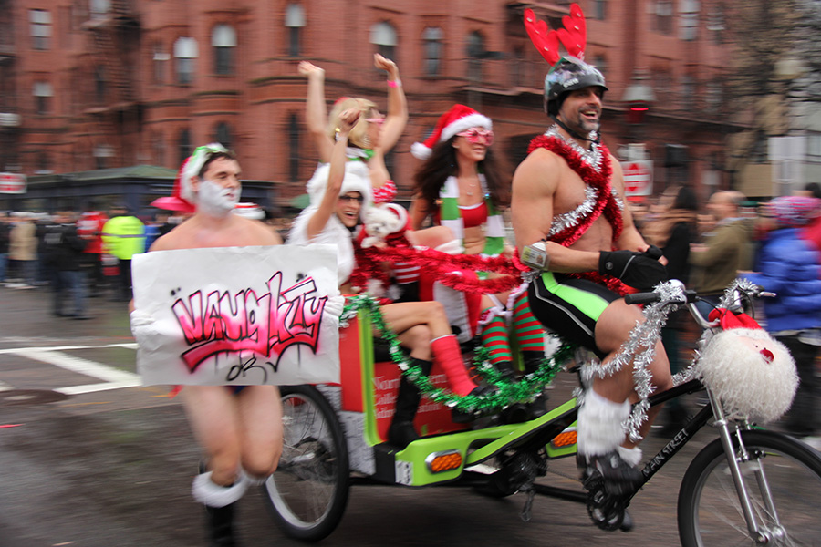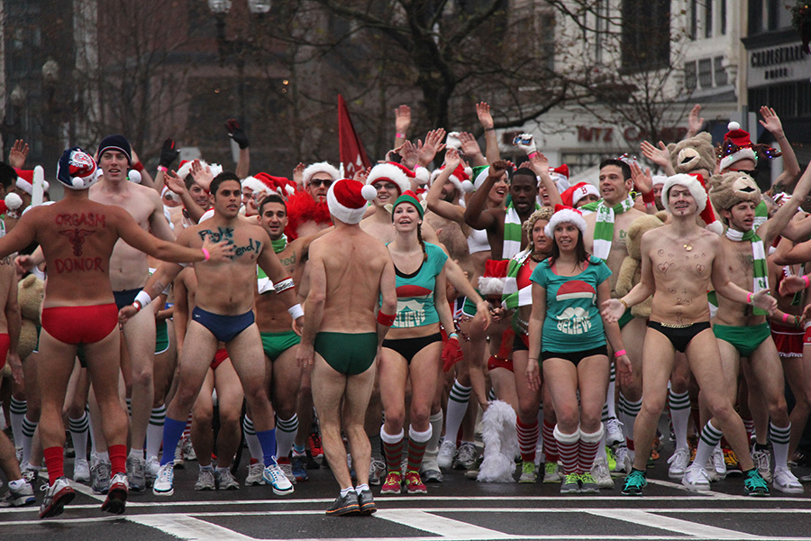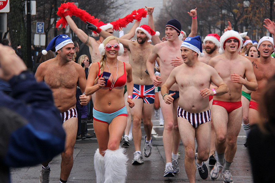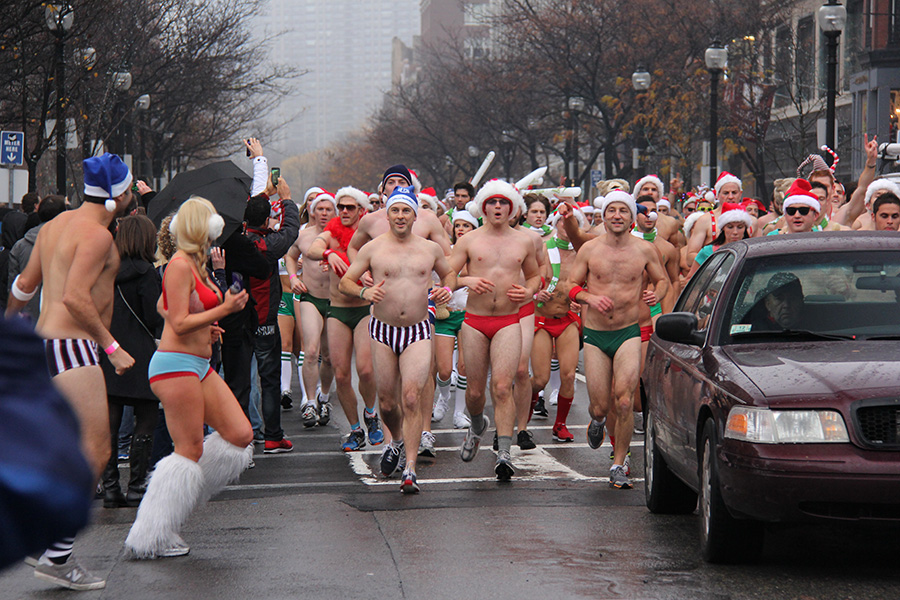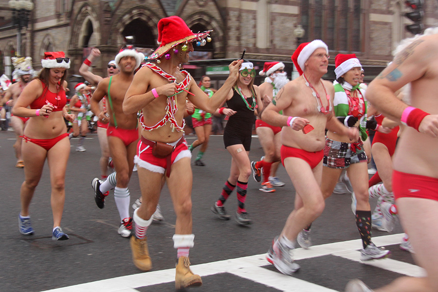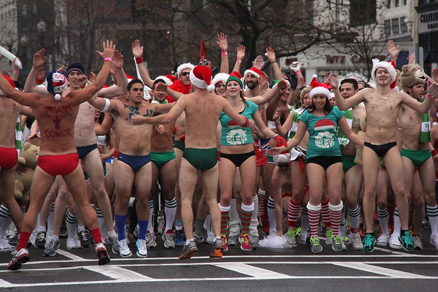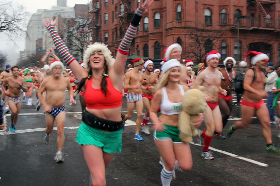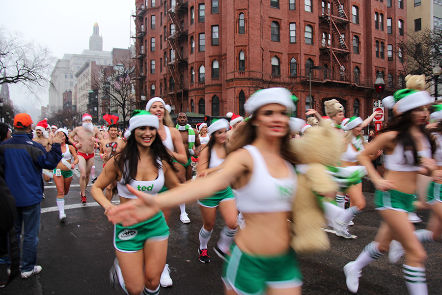 even year there seems to be more and more people participating in the santa speedo run. this year the profane teddy bear movie ted seemed to have hijacked the run in some sort of promotional campaign, with numerous folks decked out in ted paraphernalia. because there was so many people, it became this mob of runners which made it hard to see the individual creativity participants put into their speedo santa outfits.