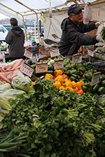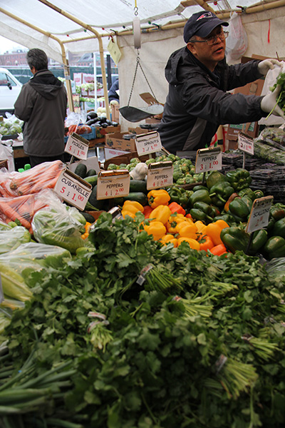 afterwards i made my way to haymarket, cutting through downtown crossing. i ended up getting: 5 bundles of scallions ($1), 2 bundles of cilantro ($1), 6 persimmons ($2), bag of red seedless grapes ($4.50), box of clementine oranges ($2), 1lb. of korean long green hot peppers ($1), and string of garlic ($1). one of the asian vendors saw me taking photos and asked if i was japanese. i made an attempt at guessing his ethnicity and actually got it right: cambodian. i asked if he was from phnom penh and he said yes, and when he learned i'd been to cambodia before, we came instant friends. he told me the capital city has changed a lot since i'd been there.