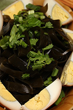 i must've built up a big appetite biking into boston and back, because i had 3 bowls of rice (i only had some yogurt and granola for breakfast). unfortunately where i was sitting - at the far end of the table - made it impossible for me to reach most of the dishes, so i ate standing up practically the whole night, walking down to the other side of the table to pick up some food.