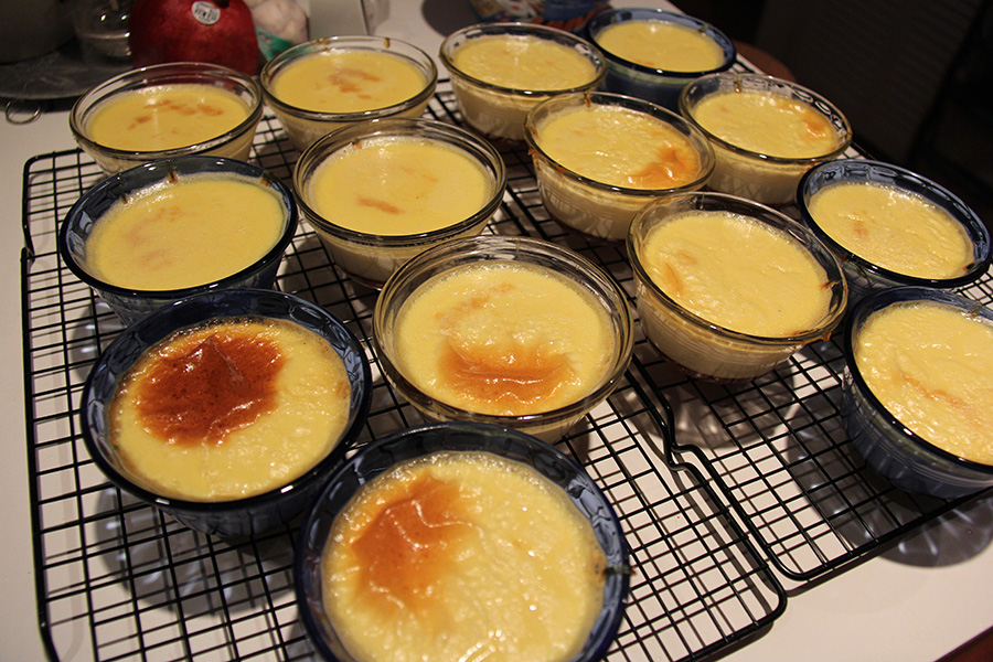 these flan i'm making is for dinner on thursday night. the recipe is actually for 12 flan, but there's enough to make 14. i only really need about half a dozen, but might as well make some extras while i'm at it. i'm also making some blue cheese burgers and possibly some steamed mussels, but i won't need to get those ingredients until thursday (for maximum freshness).