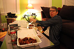 drew didn't return home until almost 8:30. we were supposed to get wings so i was waiting for him to get back so we could order and eat. i almost couldn't wait anymore but finally he did return. i called in the order and we went to wing works together to pick up our food.