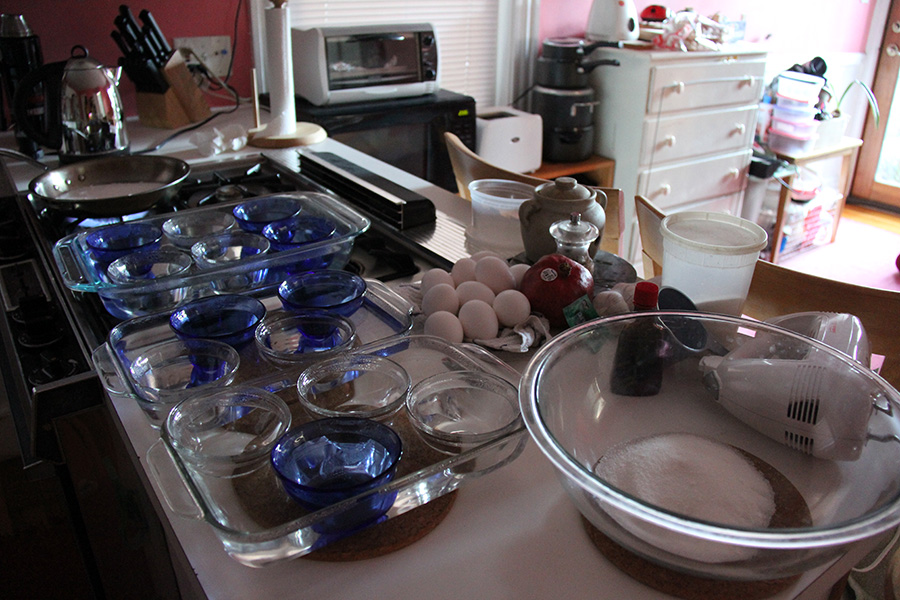most of my ramekins were in belmont so i had to go to my parents' place to get them. for the sake of speed, i took my trek allant. since that bike has no baskets, i carried the glass ramekins wrapped up in some towels inside a backpack. the allant is a great bike, and every time i ride it i can't believe i only paid $100 for it. besides bigger wheels, it's much lighter than my normal trek grocery-getter, which i definitely notice when i more easily ride up hills.