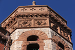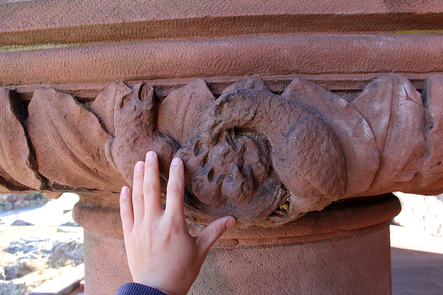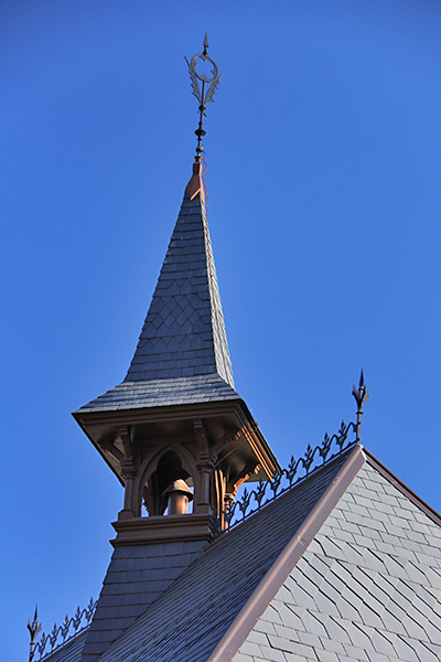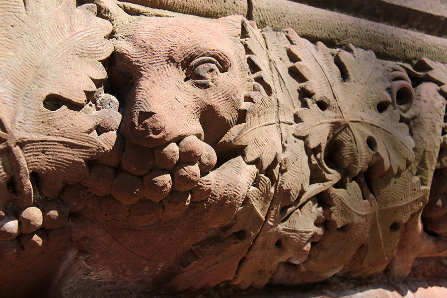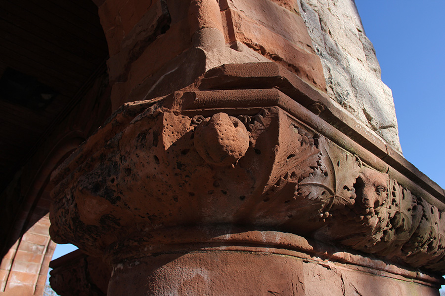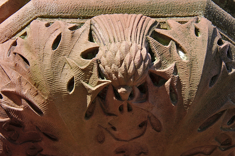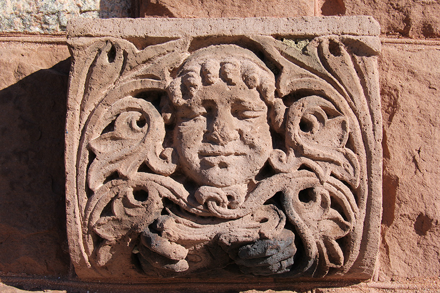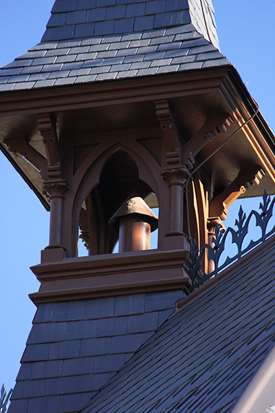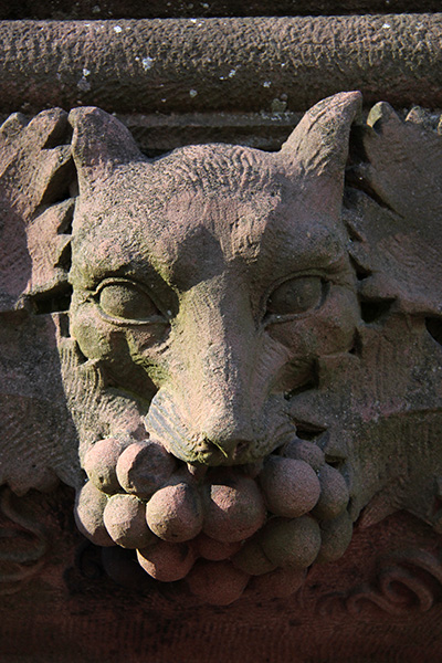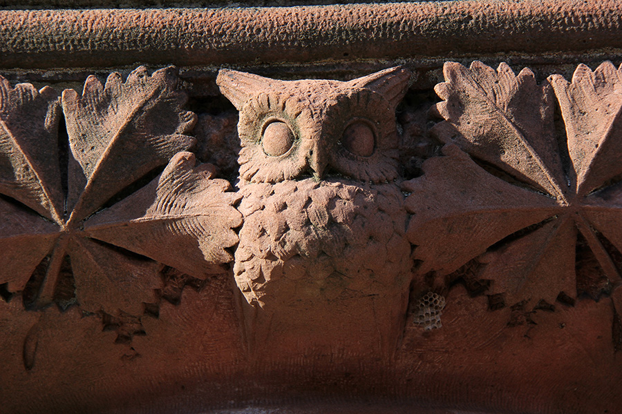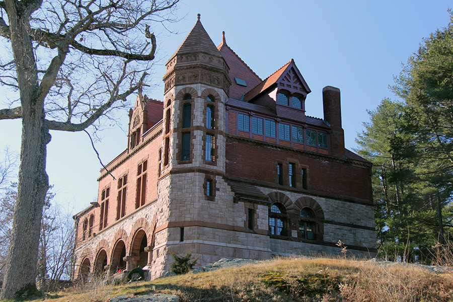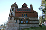the gate lodge was just that: a gate that you passed through in order to get to the main mansion further down the private drive. it was designed with living spaces for the on-duty attendants, and the place was definitely inhabited, although we didn't see anyone. the gate lodge is atypical in its use of unshaped stones, which gaves the structure a rustic cottage-like appearance. the entrance is also unique in the number of different colored stones. we walked around the lodge, seeing it from all angles. it's just unfortunate that it was already late afternoon and with the sun close to setting most of the lodge was in shadows.