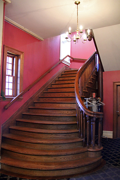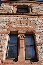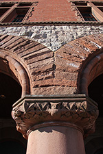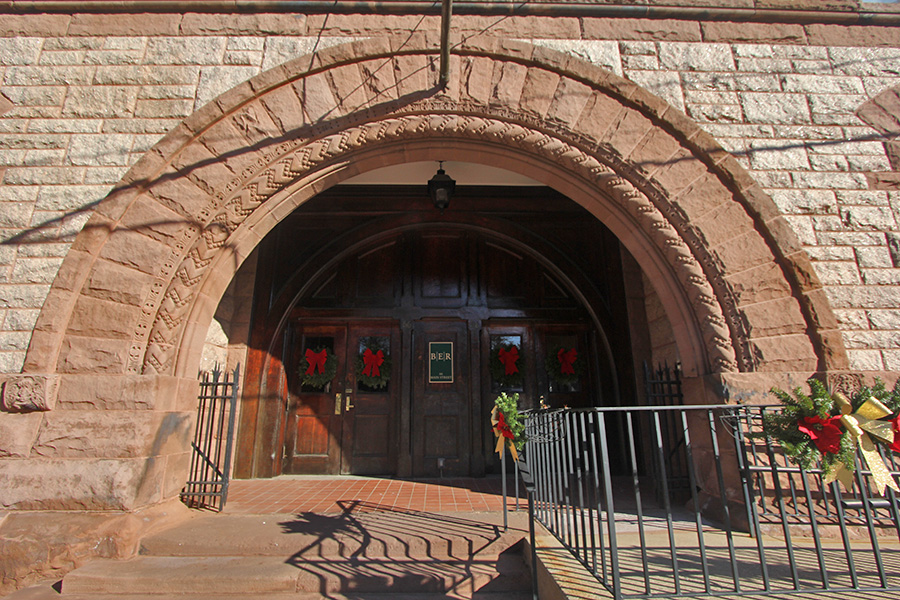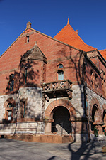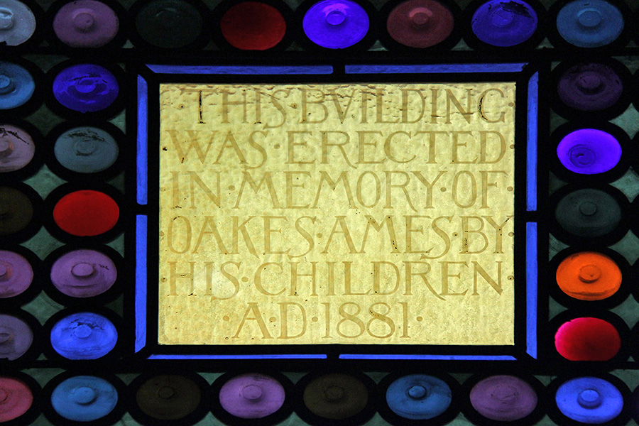 the oakes ames memorial hall next door is the more impressive structure. supposedly it was built with the idea that it would serve as the town hall (which ended up not happening). a man opened a door and waved for me to come inside. apparently enough richardsonian fans come and visit that it's fairly routine to see people wandering around outside. we were invited to check out the inside while they set up the 2 function halls (downstairs and upstairs) for weekend events. we spoke with a young man first, who was helpful but couldn't give up too much specifics about the history of the building. later we spoke with an older gentleman (the boss) who turned out to be a direct descendent of the eponymous ames. neither drew and i knew what the ames family were famous for. "shovels," fred told us. at one point 2/3 of the world shovels were ames shovels. their former office space in boston was none other than the ames building i've often admired. suddenly it all made sense, like the end of a movie when all is revealed. the ames family also invested in the transcontinental railroads.