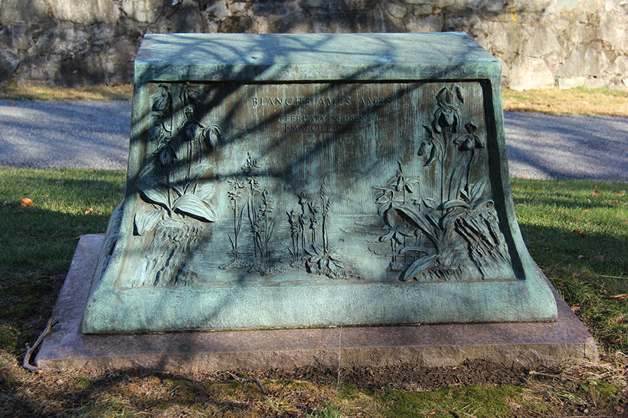 the day was brisk but sunny, with not a single cloud in the sky. patches of frost crunched underneath our shoes when we walked over the lawn. we started with the ames free library first since it was next to the parking lot. later we'd come back to see the interior space.