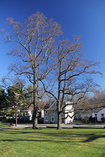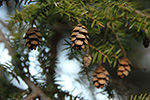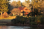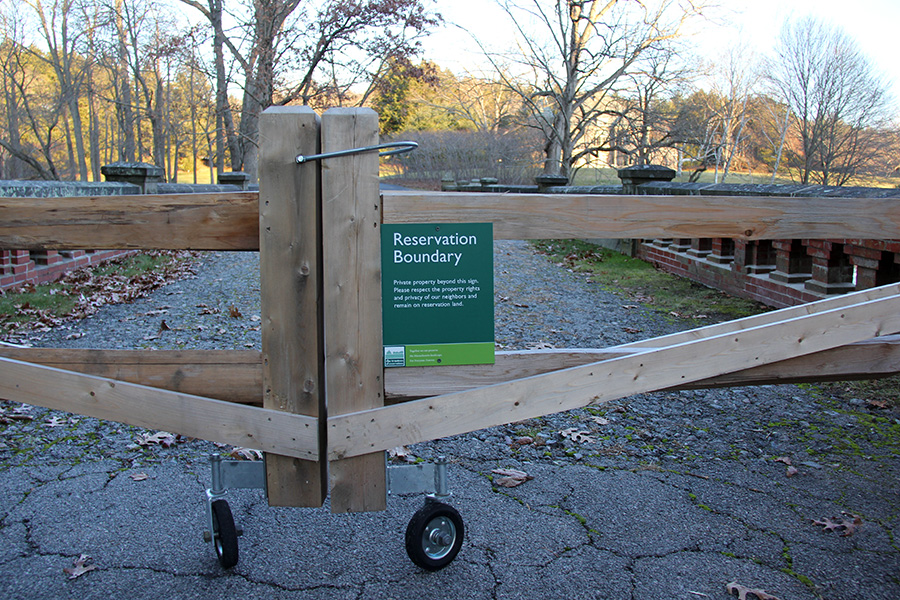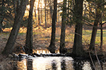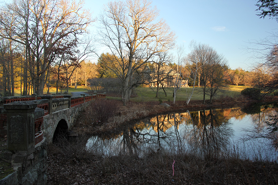 so we looped around to the other side, within eyesight of the defunct railroad station. we unsuspectedly drove into the governor ames estate (a reservation), not realizing it was for pedestrian traffic only (there was nobody around). we saw a large house which might've been governor ames' mansion at one point, but this wasn't what as at the end of the gate lodge. we kept driving until we came across a bridge that was closed off by a gate. across a long stretch of pond was a manicured expanse of trees and lawn and a far larger mansion off in the distance. "there!" drew said as he pointed to the gate lodge we saw earlier. we could only admire from our side of langwater pond. what was this place? could it be the existing ames family estate? it certainly seemed grand enough to fit that description. we explored the reservation a little bit more, drew doing some bushwhacking along the shoreline to see if i could get a close look at the property. i admired a stand of eastern hemlock and then ate a few pieces of forst-damaged lettuce leaves growing from a small patch of neglected farm land. with the sun close to setting, we decided to finally leave easton and go to ikea.