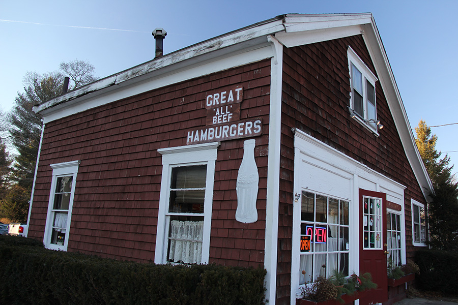 back on the road, we were now traveling north on washington avenue. we came across an even bigger strip mall (CVS, roche brothers), but there was still no eating places. so we turned back, and went to a local burger place we saw earlier, mcmenamy's hamburger house.