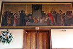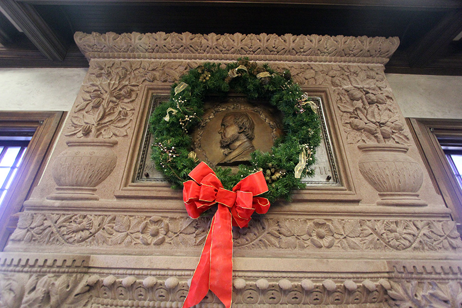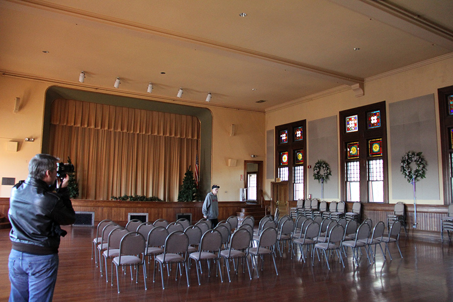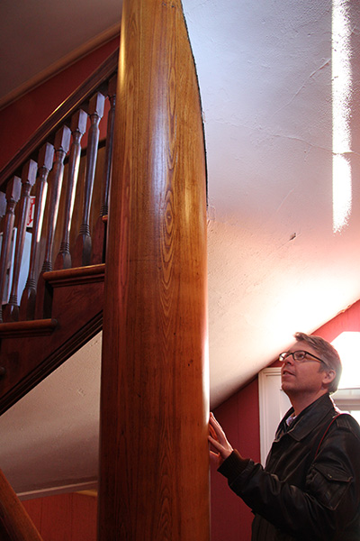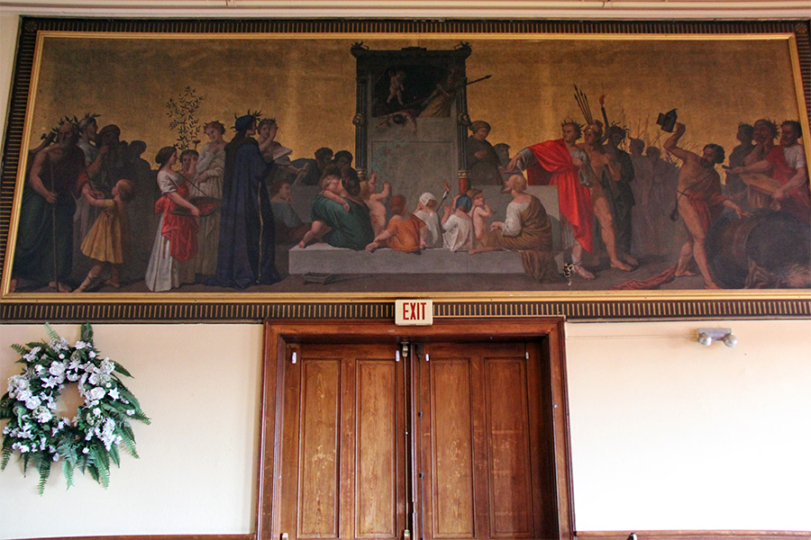 fred seemed to be the grounds keeper for the oakes ames memorial hall, and seems to be involved with the town historical preservation society when it comes to building maintenance. he told us there used to be these large rhododendron bushes that were threatening to eclipse the building. the preservationists were against taking them down since they might've been put there by olmsted in his landscape scheme, but the whole reason why people come from long distances to easton is to see these richardsonian architecture. so one weekend, armed with a chainsaw, fred took it upon himself to chop down all the rhododendrons. he became a town pariah for a short time, until people realized it was the right call. fred knew his stuff, and recommended a few other places we should visit while in town. he was especially grateful when drew helped him identify one of the mysterious characters (diogenes) on a large mythological painting hanging in the upstairs function hall.