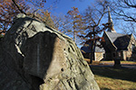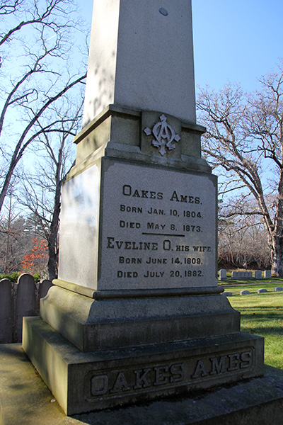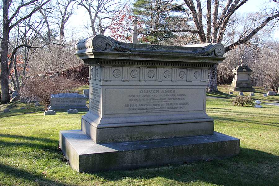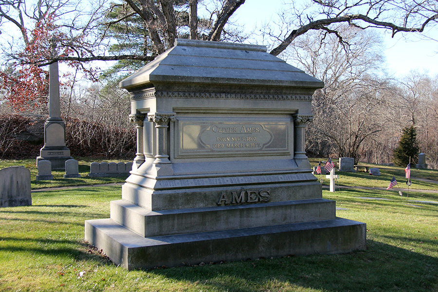 bernie also took us next door to the parsonage. drew was impressed by the craftsmanship. bernie went back to work while we wandered about into the cemetery behind the church. we came across the ames family plot set on a little hill. so here lies the remains of one of the most powerful massachusetts families if not all of america! i was in awed. it was a little hard to keep straight of who's who since the men of the family seem to be either named oakes or oliver; it'd be nice to have a family tree diagram to keep track of everyone. i lost track of drew at some point (he wandered away to explore the far edges of the cemetery) and had to call him to find out where he was.