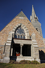 back out front, we finally met dick the organist, who lives just across the street (in the red house). here was a man who had stories! he said the ames family rejected richardson's design for the church ("not grand enough") but instead went with the design of a family member by the name of john ames mitchell1, who "knew what he didn't know," said dick. he told us the nearby parsonage was built by henry van brunt: if that name sounds familiar, it's because he also designed the harvard memorial hall (1870, neo-gothic) and the cambridge public library (1888, richardsonian romanesque). dick told us how the church was one of the first places to have a woman minister who apparently made some great apple pies. he remember sitting out on the front porch drinking gin, and now holds a weekly poker game inside the parsonage (a tradition started by the minister's husband).