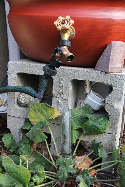 before the patriots-jaguars game started, i went into the backyard and drained the rain barrels. there was so ice along the interior walls and the surface, but it was still water for the most part. a rain barrel can't be left to freeze with a full container of water because it'll burst the barrel when the water solidifies. i pulled the garden hose so the water would drain out onto the other side of the backyard. i came out during halftime and after the game to switch the hoses to the other remaining containers.