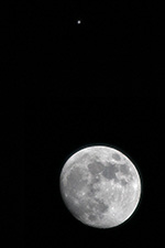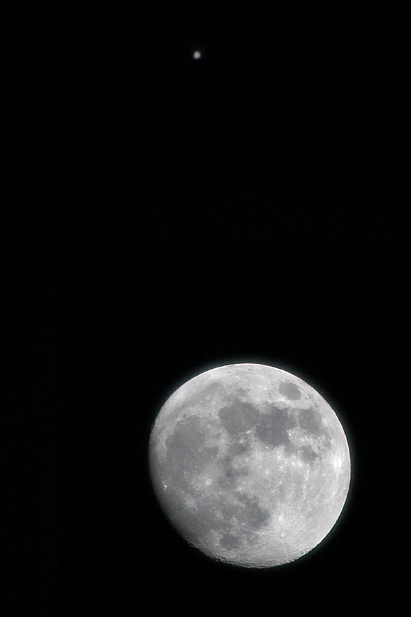 after dinner, i made it home wearing my safety vest for the 3rd night in a row. i got everyone to come out of the house to check out the conjunction between the moon and jupiter. a bit further down was the star aldebaran in the taurus constellation.