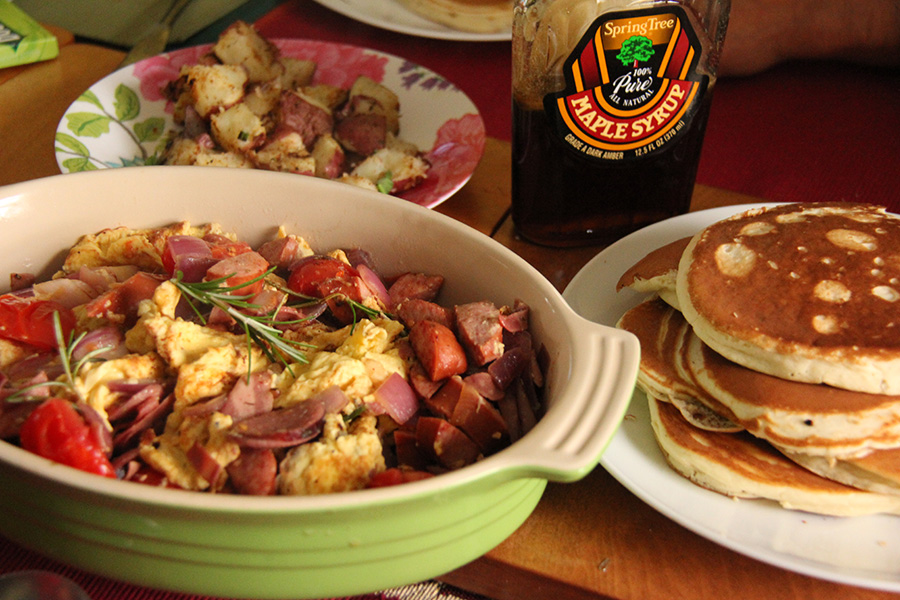 i arrived in belmont with the leftover bisquick mix drew left behind. we made pancakes, although since we don't have much experience, some of the flapjacks were black on one side. we also didn't have any milk in the house so ended up using half and half mixed with equal portion water. pancakes are so delicious and easy to make, i'm surprised it's not on my breakfast menu more often.