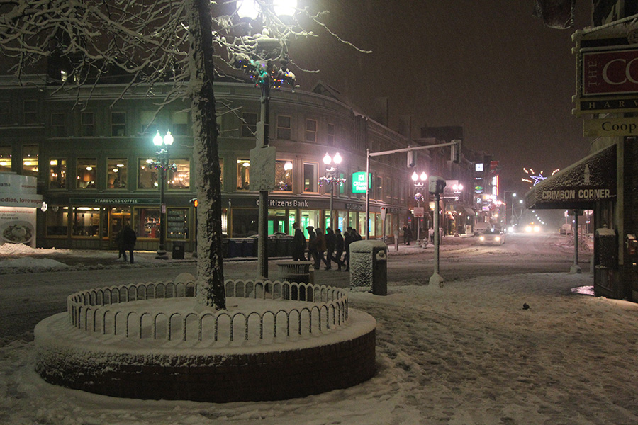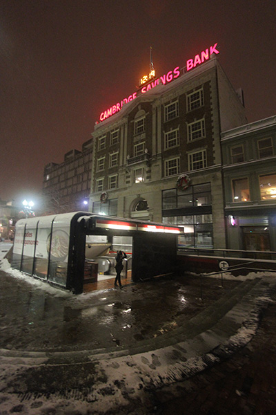 this gave me time to ride the bike down to harvard square to deposit a check from client N. it was only half the amount of work i finished back in september, but better than nothing. it was just starting to flurry a bit, but the over-anxious city road crew had already caked most of the main roads in a thick layer of rock salt. riding the bike on the street, all i could hear was the crunching beneath my tires.