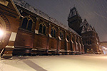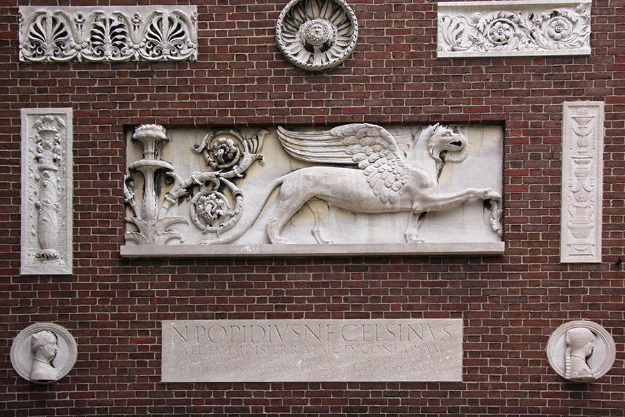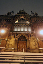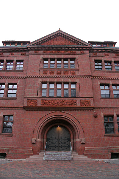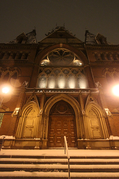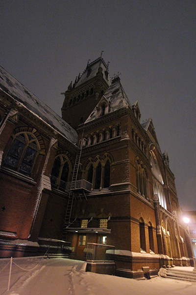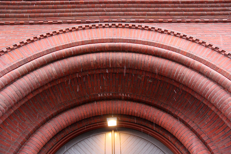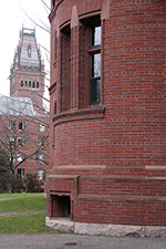 since i wasn't in a rush to get back home, i wandered harvard campus, making a pilgrimage to sever hall, one of the two romanesque buildings designed by h.h.richardson. it's not as ostentatious as his typical style, but does have some interesting details, like the rounded brick work around the arched western portal entrance.