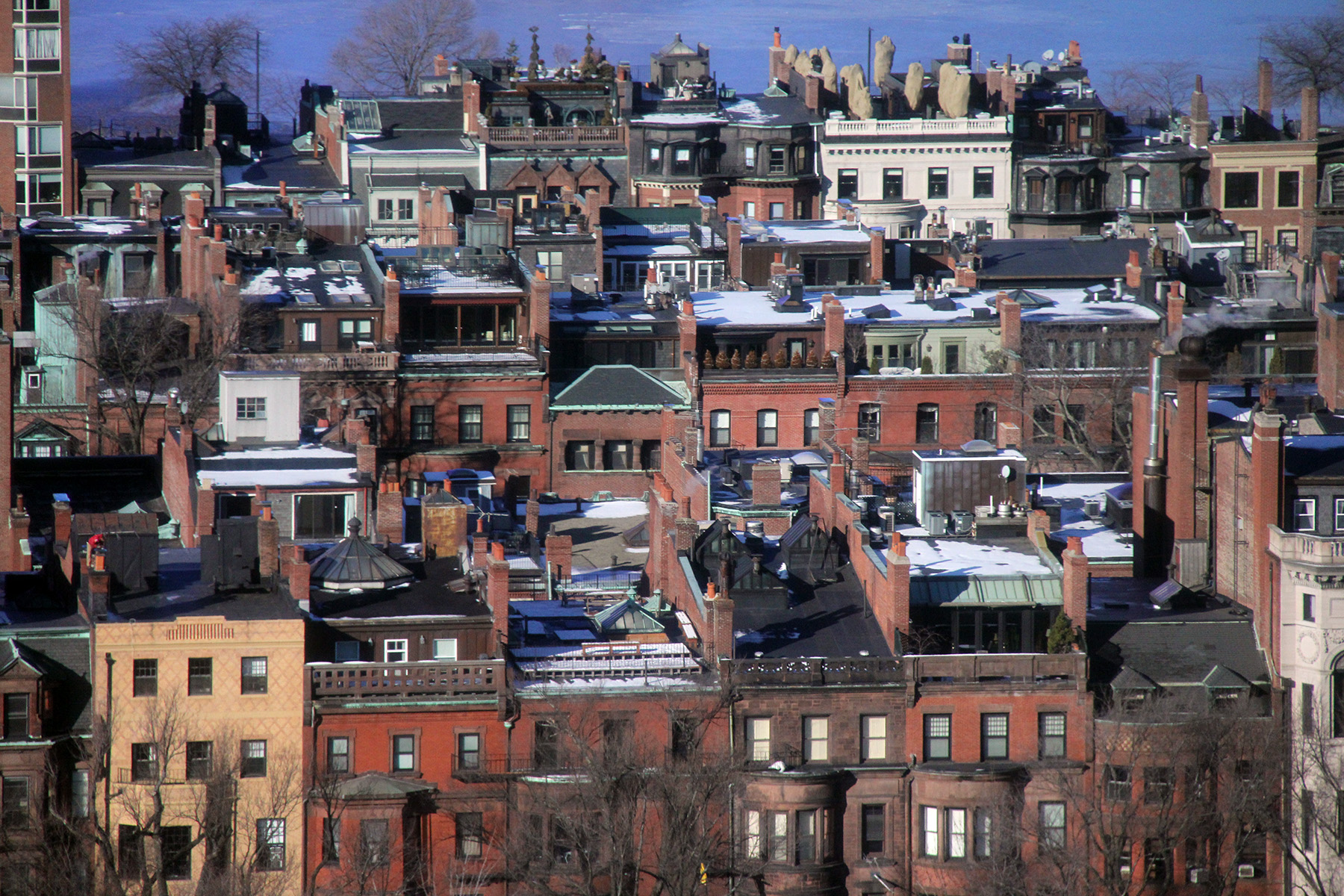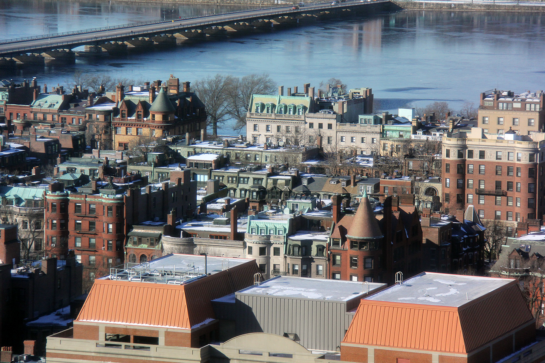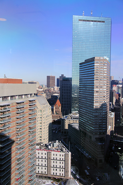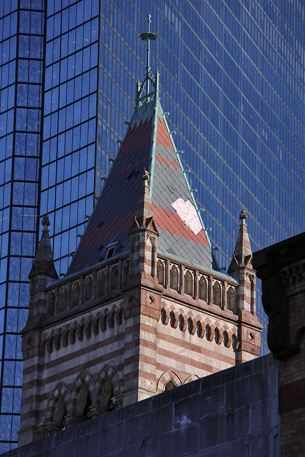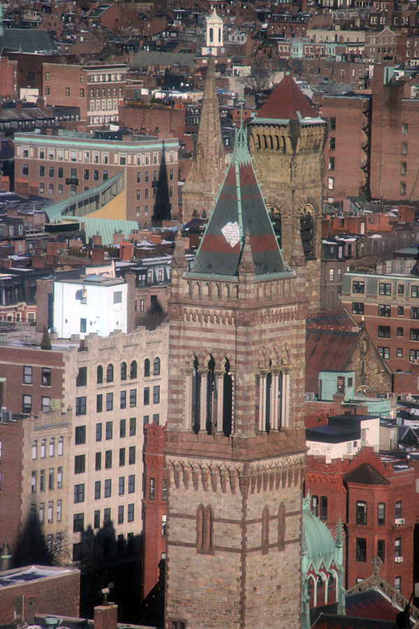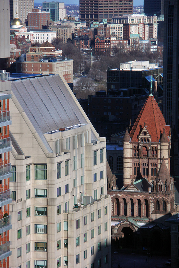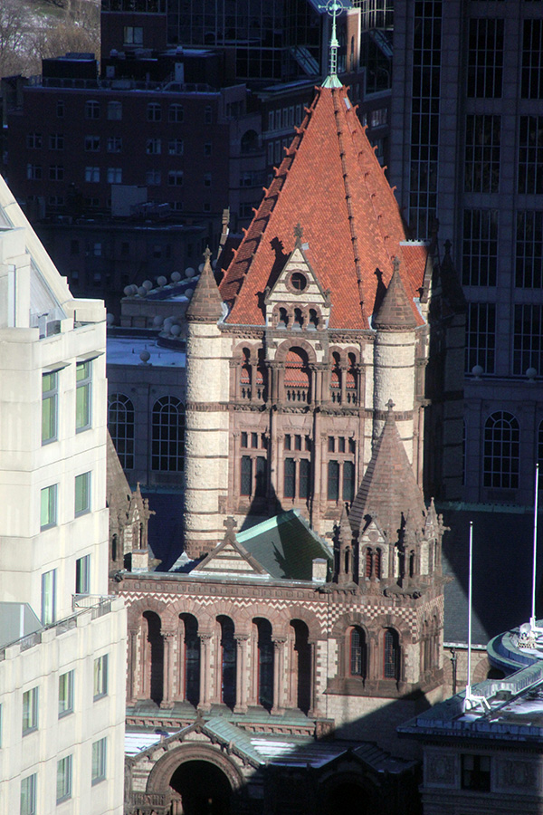 here's something i never noticed about the trinity church: the central tower (with the red-bricked roof) is actually quite tall. from the ground level it's hard to properly gauge it's height, especially next to the much taller john hancock tower. i've always imagined trinity to be kind of short and compact, but seen from the 23rd floor of 101 huntington, the central portion is almost like a mini-skyscraper in it.