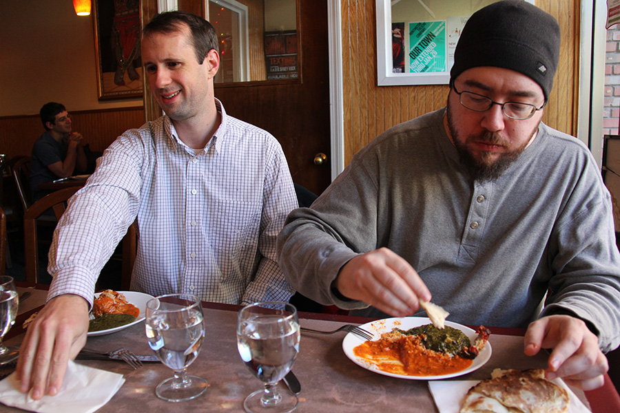 i took the number 1 dudley bus out of harvard square to meet dan for lunch at the bombay cafe in boston. i'd been there once before, back in november 2009.