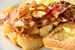 i ordered a large breakfast combo of french toast, scrambled eggs, bacon, home fries, and a hot chocolate. dan and cymara must've noticed i don't seem to have any portion control when it comes to my food choices and asked if i exercise at all to maintain my svelte figure. they ended up treating me to breakfast.