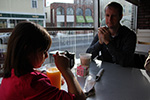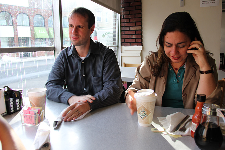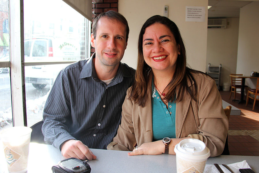 almost exactly 10 years ago i was a witness to the civil marriage between dan and cymara. it happened in brighton center, even though dan and cymara were living at allston at the time. afterwards we got some coffee at the mirror cafe. since their 10th year anniversary was coming up and they just happen to be in town (normally they'd be in brazil), cymara thought it'd be a nice idea if we could all have breakfast there again, to recreate that moment.