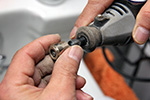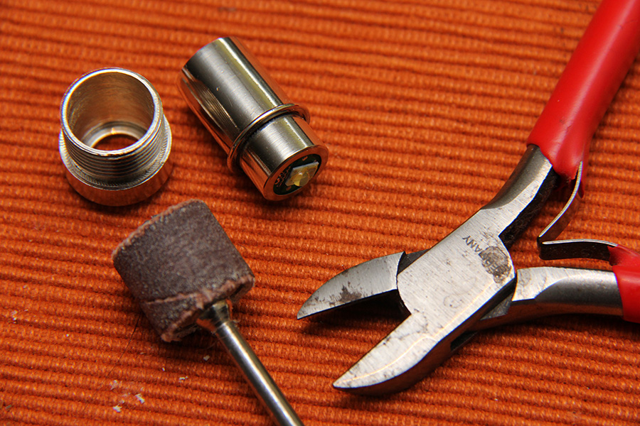 the problem was the TLE-6EXB has an 8mm diameter while the metal housing has an inner diameter of 7mm. my father figured he could sand it down by hand with a small piece of sandpaper, but i said he could just use his dremel tool with a sandpaper attachment (which he had). so moments later he was filling down the inner wall of the housing, to the point where the bulb finally fit. we decided to continue this project another day though, since the next step requires some messy soldering.