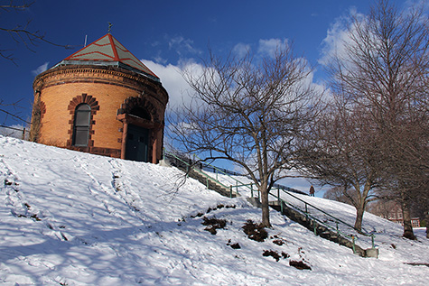 the payson park reservoir has an interesting history. it's actually owned by the neighboring town of cambridge. cambridge has its own reservoir in fresh pond; the payson park property is actually the "water tower" that gets pumped with reservoir water to supply adequate pressure. locally, the place is just known as "the reservoir" (i didn't even know it had an official name), and as a kid growing up in belmont it was known for 2 things: as a place to go sledding (even though the hill isn't particularly steep and ends at a busy intersection) and a place for deulistic afterschool fights. now i've never personally seen a fight at the reservoir before, but understood that "meet me at the reservoir" was kid code for pugilism.