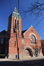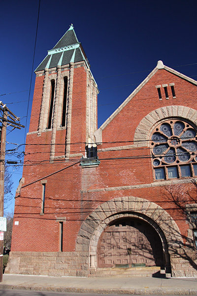 i've got architectural vision now, i can't stop seeing romanesque buildings where ever i go. i've seen that prospect hill congregational church a bunch of times, it's an impressive structure in union square, and i've even been inside a few times, but today was the very first time i saw it for what it was, a richardsonian romanesque style church (now condos).