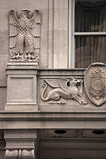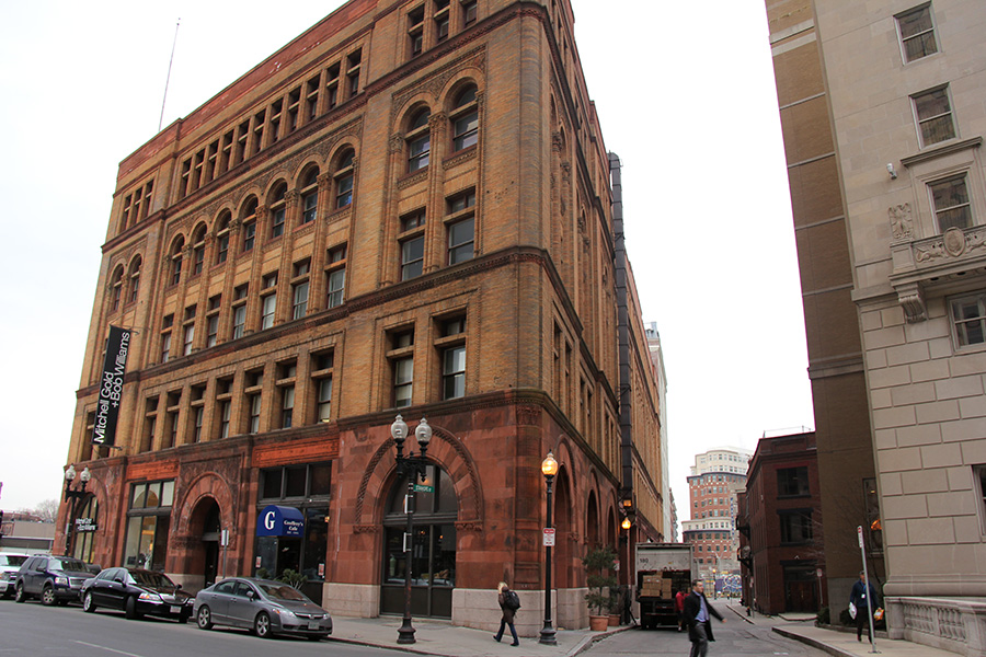 here at the intersection of columbus avenue and berkeley street i came across another grand richardsonian romanesque structure: the youth's companion building, built in 1892 by hartwell and richardson (the same architects who designed the first spiritual temple 1885 on exeter street, boston). the foundation is a double right-angle trapezoid, with an acute angle corner facing north. youth's companion was originally a religious children magazine that ran from 1827-1929 (later becoming a general audience entertainment periodical), best known for introducing the pledge of allegiance.