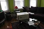 after i finished eating lunch, i packaged up frances' latest shipment (the last of her winter boots arrived this morning via fedex) and carried it on the back of my bike to the post office to send it out.