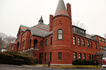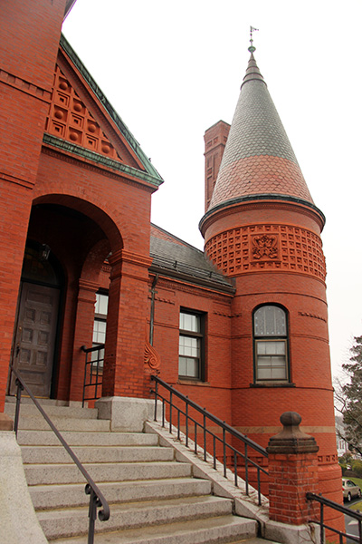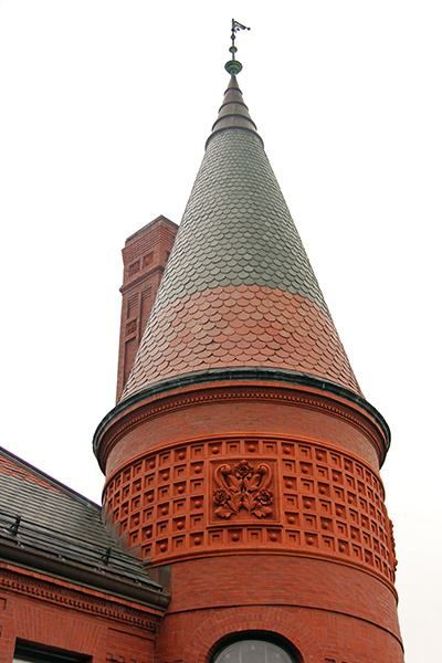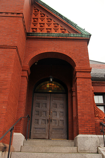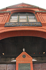 i went to belmont center to take some photos of the town hall, built by hartwell and richardson (of yesterday's youth's companion building fame) in 1881, in the queen anne style. i'm not exactly sure what constitutes queen anne, but the building has elements of victorian and romanesque.