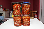 about to make dinner, i suddenly realized i still had to finish my kimchee. i added the other ingredients and began mixing everything by hand. i forgot to pour out the liquids first, so i had to move everything into another container so i could pour out and save the liquids. i continued mixing bare-handed, which was a bad idea because the combination of salt and hot chili pepper made my hands hurt. i then transferred the mixed kimchee into jars, for a total of 4 jars. i then topped off the jars with the reduced liquids i'd saved earlier.