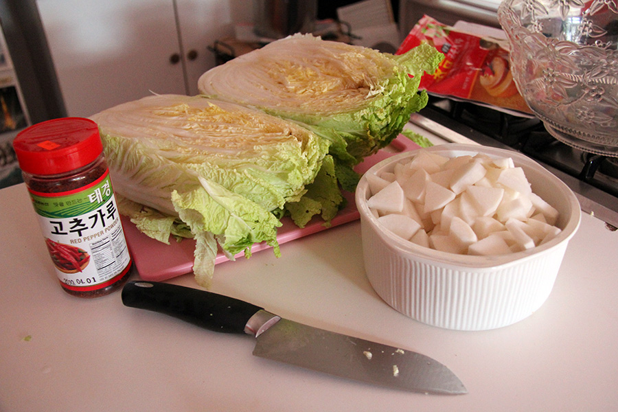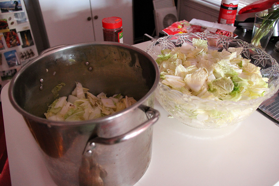 5.8 lbs. napa cabbage 2 daikon radishes 4 tbsp fine salt |