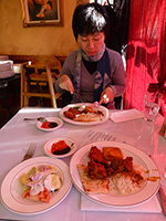 WCH never had indian food until she came to america. she visited a chinese-canadian friend in seattle during the thanksgiving break, who happened to be married to an indian man, who took them out for indian food every night. the food at desi dhaba wasn't bad ($8.95 buffet), but some of the stuff were definitely leftovers. they had goat curry which i'd never seen before at any indian buffet and which was quite good (i had two servings). they had indian rice pudding for dessert (my favorite) but i didn't recognize it and though it was salad dressing so i didn't get any (next time i'll know what kheer is).