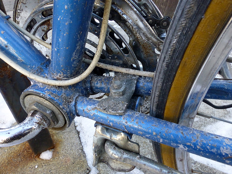 i also washed the salt off my road bike. since the hose was already shut off, i used a large bucket of warm water and a used sponge. later i dried it with a rag. i was sure my replacement brake levers would arrive today, but they didn't come, so it looks like my trek bike won't get fixed before the snowstorm arrives tomorrow.